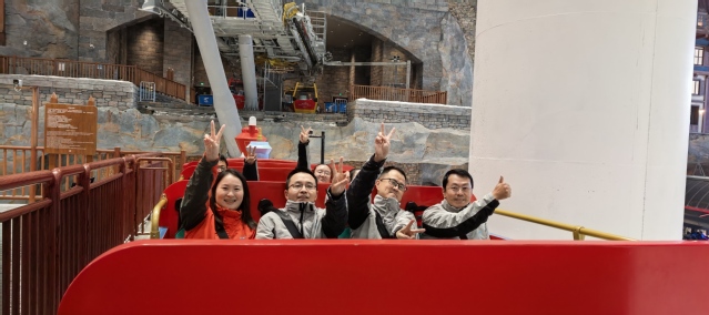 大家兴致勃勃地搭乘了备受瞩目的 “雪国列车” 。列车从一层站台缓缓出发,蜿蜒攀升直至五层,沿途将银装素裹的梦幻雪景尽收眼底。这不仅是一段便捷的交通旅程,更是一次视觉享受,承载着大家对美好时光的期待与向往,开启了当天的冰雪探索之旅。