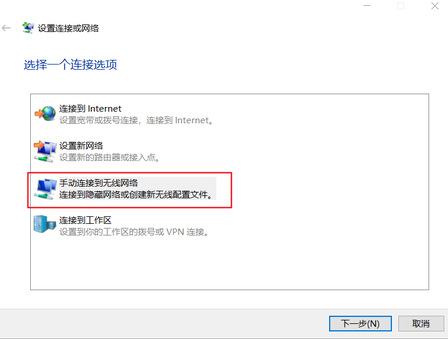 5、选择“手动连接到无线网络”,点击“下一步”;