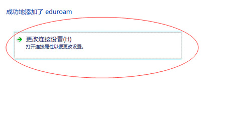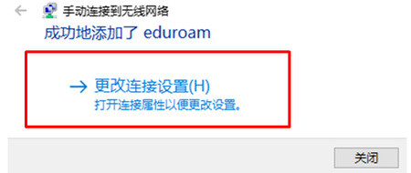 7、等待显示“成功地添加了eduroam”,点击“更改连接设置(H)”;