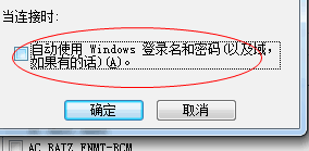 6、在配置框中取消选择“自动使用Windows登录名和密码(以及域,如果有的话)。”,点击“确定”按钮。