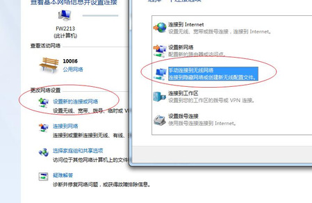 1、选择“控制面板”,双击“网络和Internet”,双击“网络和共享中心”,设置新的连接或网络,手动连接到无线网络。
