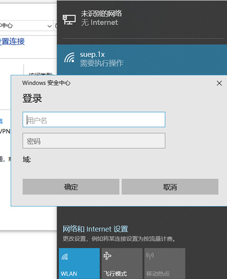 5)点击三次“确定”,系统将会自动连接suep.1x,首次连接会提示您输入无线网络帐号信息,输入账号密码后点击“确定”;