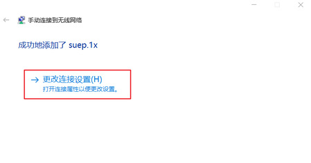 7)等待显示“成功地添加了suep.1x”,点击“更改连接设置(H)”;