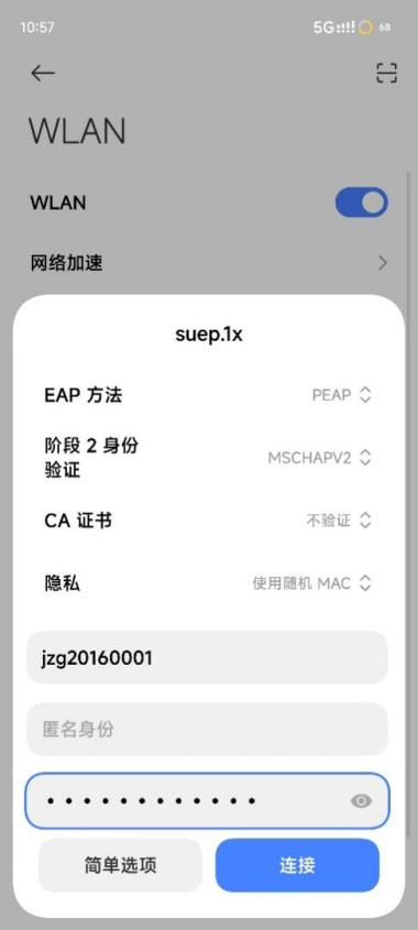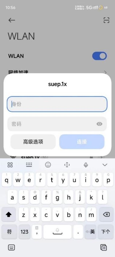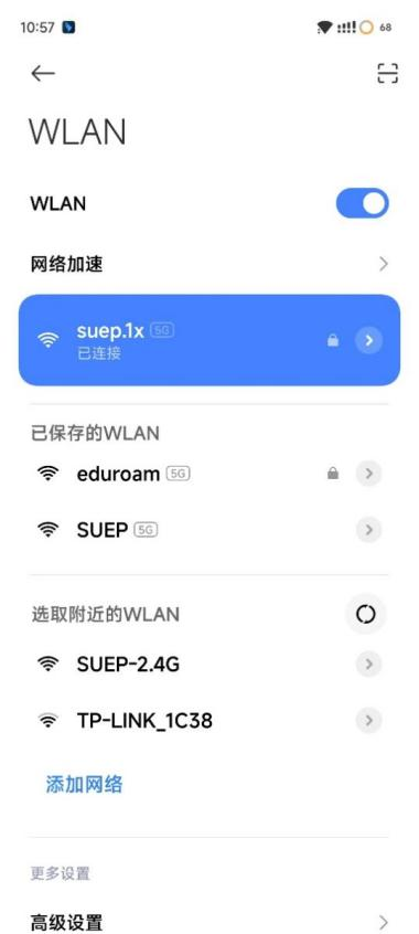 1)打开“设置”——“WLAN”,等待搜索到“suep.1x”信号;