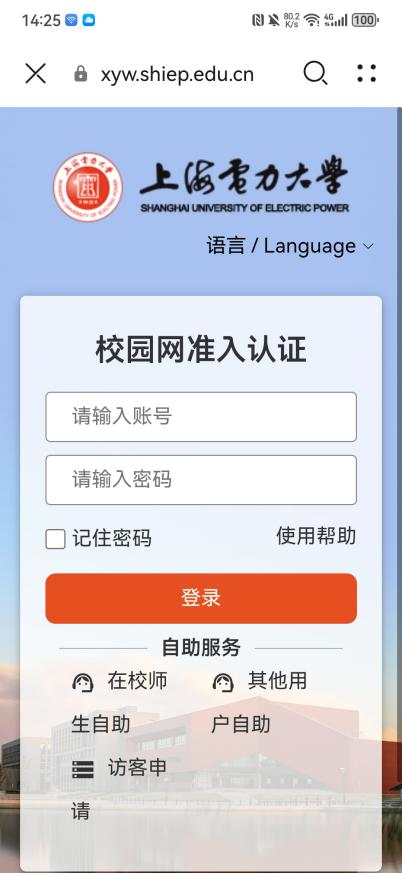 3)在自动弹出的认证界面输入校园统一身份认证账号信息认证;(一般首次连接SUEP/SHIEP都会弹出认证界面,如果在连接过程中偶尔遇到不会自动弹出认证界面的情况。此时可以在连接SUEP/SHIEP后打开手机浏览器并输入https://xyw.shiep.edu.cn,在弹出的认证界面进行认证。)
