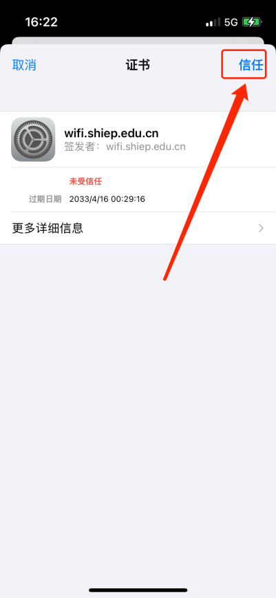 3) 点击“加入”后会跳出“证书”选择,点击“信任”,如下图所示。
